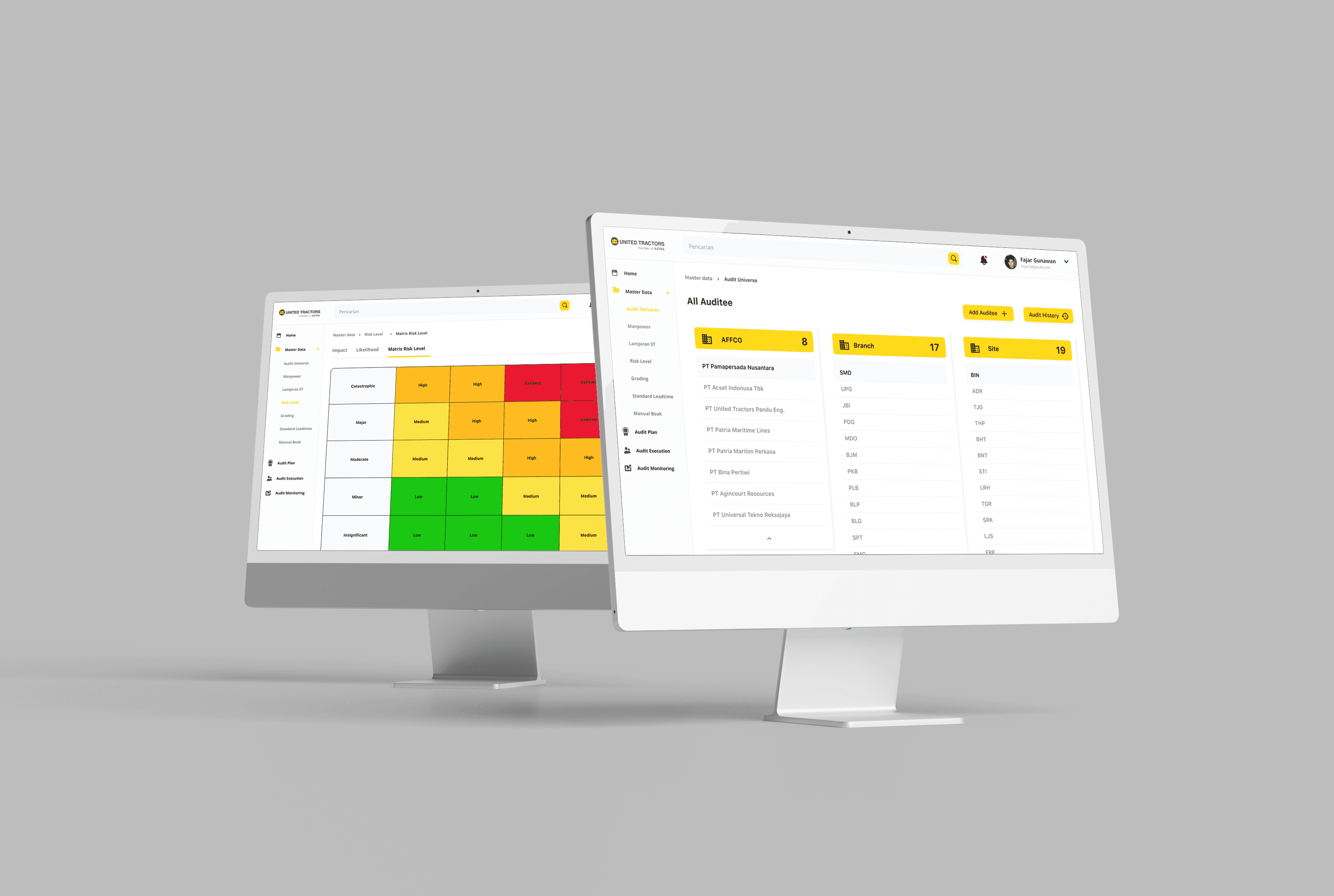 This project involved designing a comprehensive dashboard interface for the Audit Management System Website, built to support PT United Tractors Tbk’s Corporate Audit Function (CAU) and its subsidiaries. As the UI/UX designer, my role was to create an intuitive user experience that simplifies complex audit workflows—allowing both auditors and auditees to efficiently track, manage, and complete audit-related tasks in a centralized system.